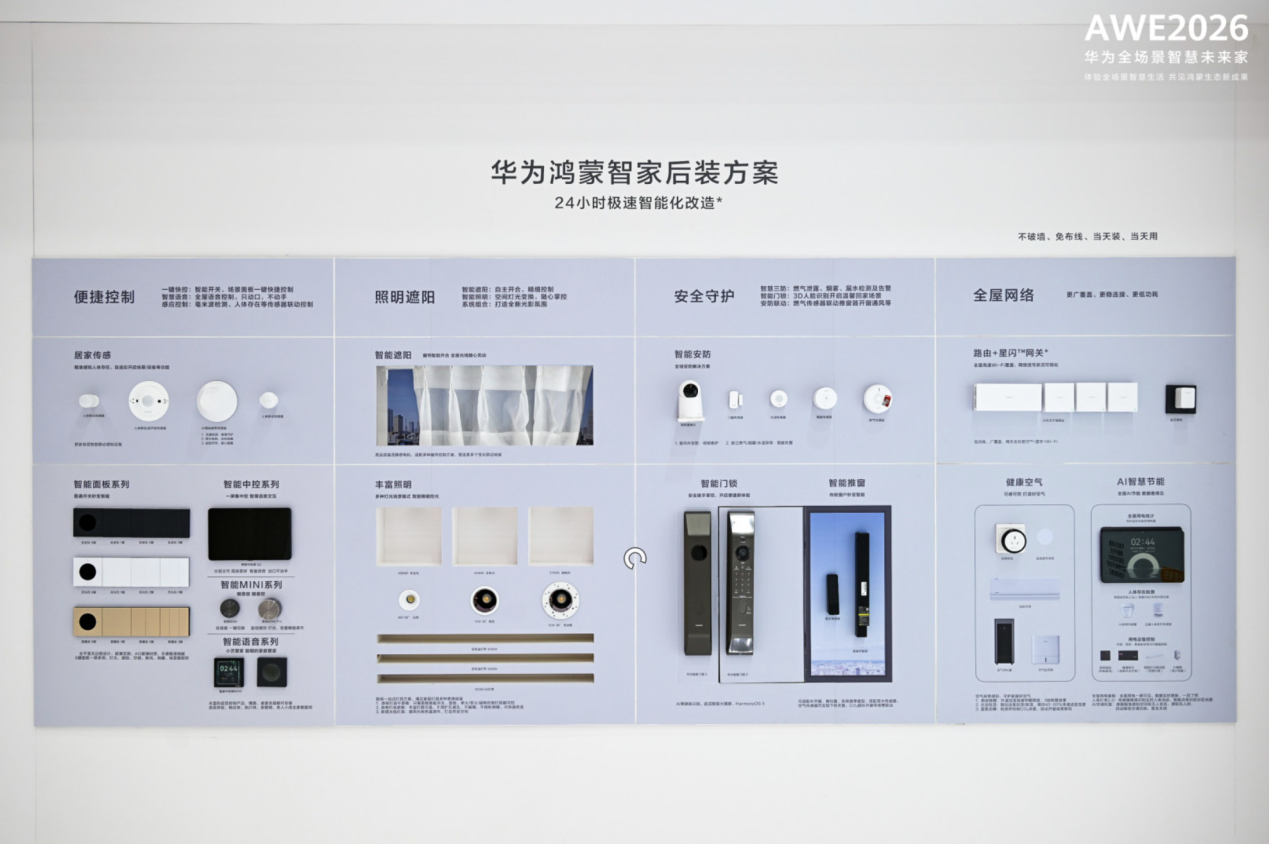 一直以来,“改造门槛高、投入成本大”是消费者体验家庭智能化的核心痛点,而华为鸿蒙智家此次推出的后装解决方案,为已装修入住用户提供了高效便捷的智改新路径。该方案实现24小时极速智能化改造,秉持不破墙、免布线的原则,真正做到当天装、当天用,让“有房就能装”成为现实。