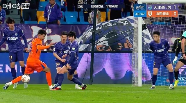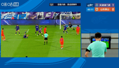 主裁判亲自去场边看,最终认定不是点球,并判给津门虎任意球。